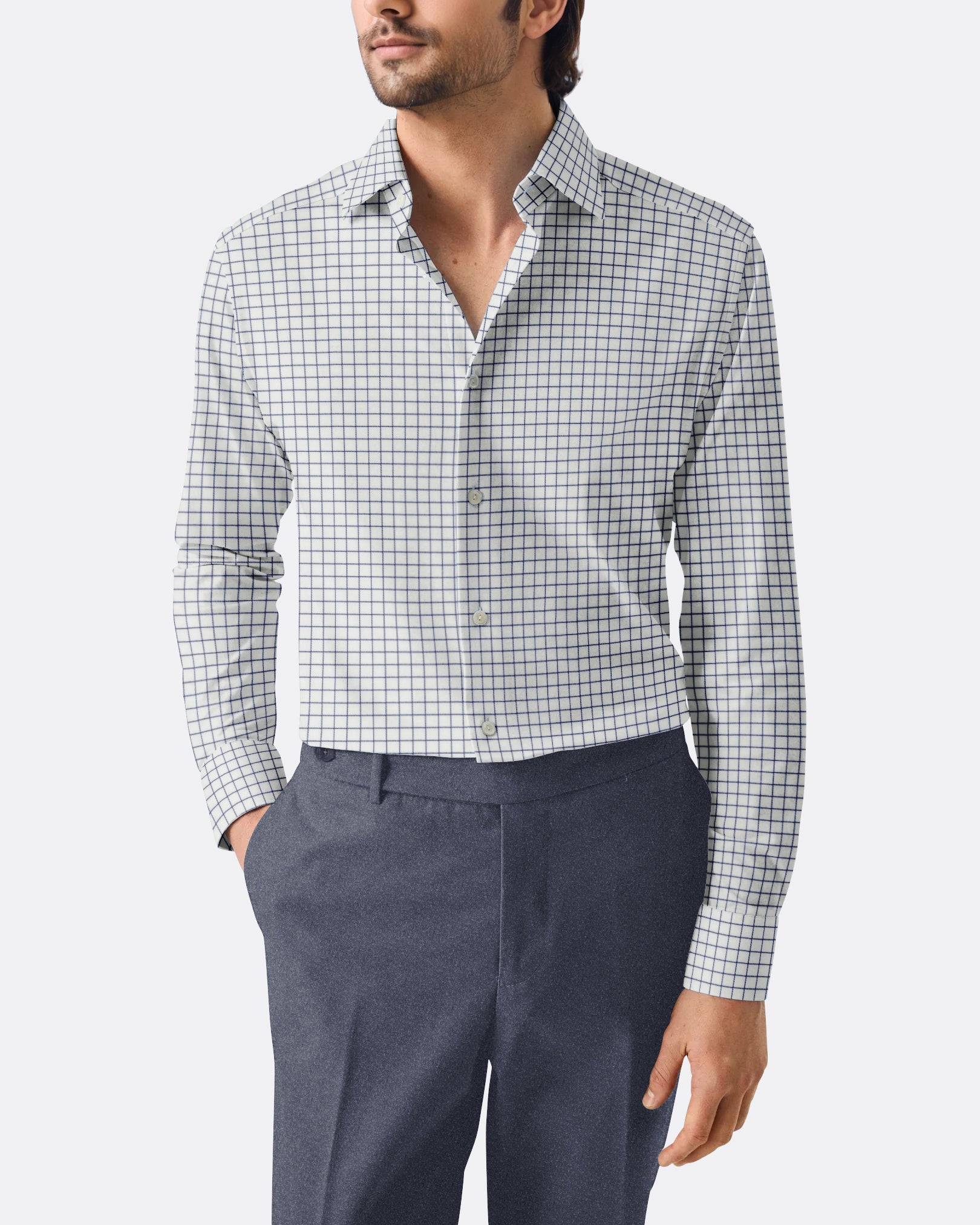 Sleek and versatile, this Black Twill Graph Check is made from cotton twill for a soft yet structured feel. A dependable option for business casual settings or professional events where understated style is key.