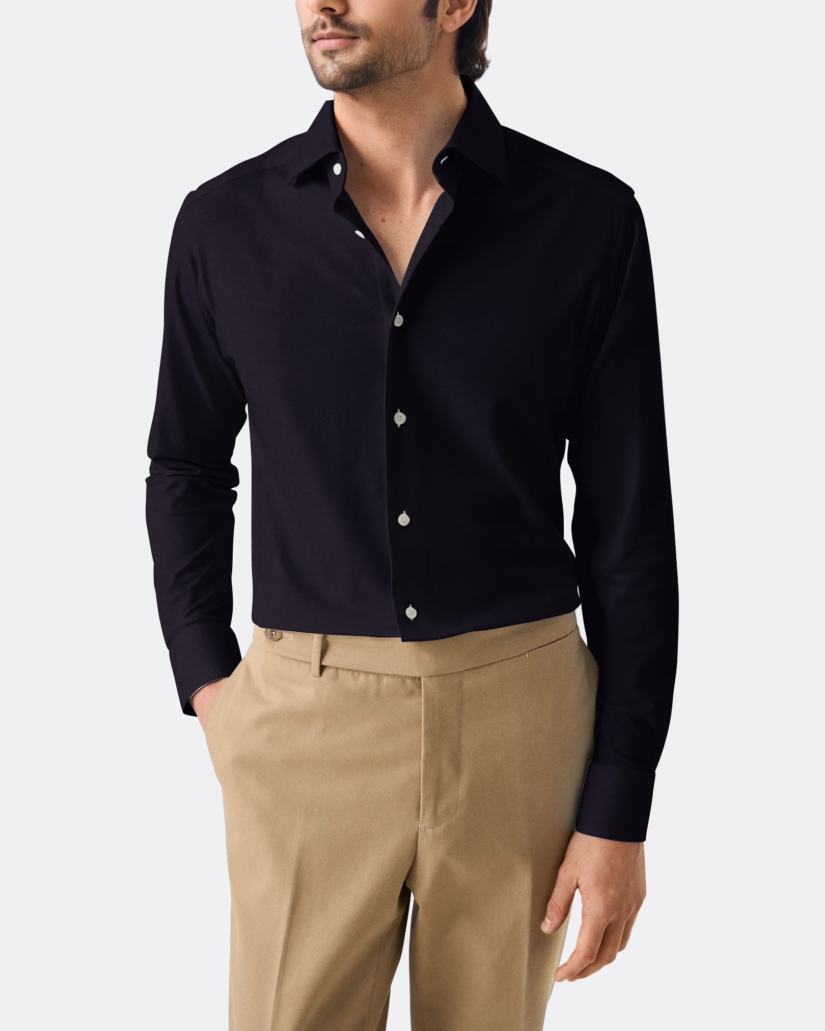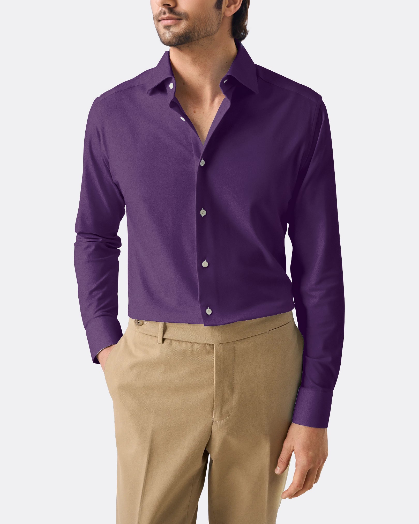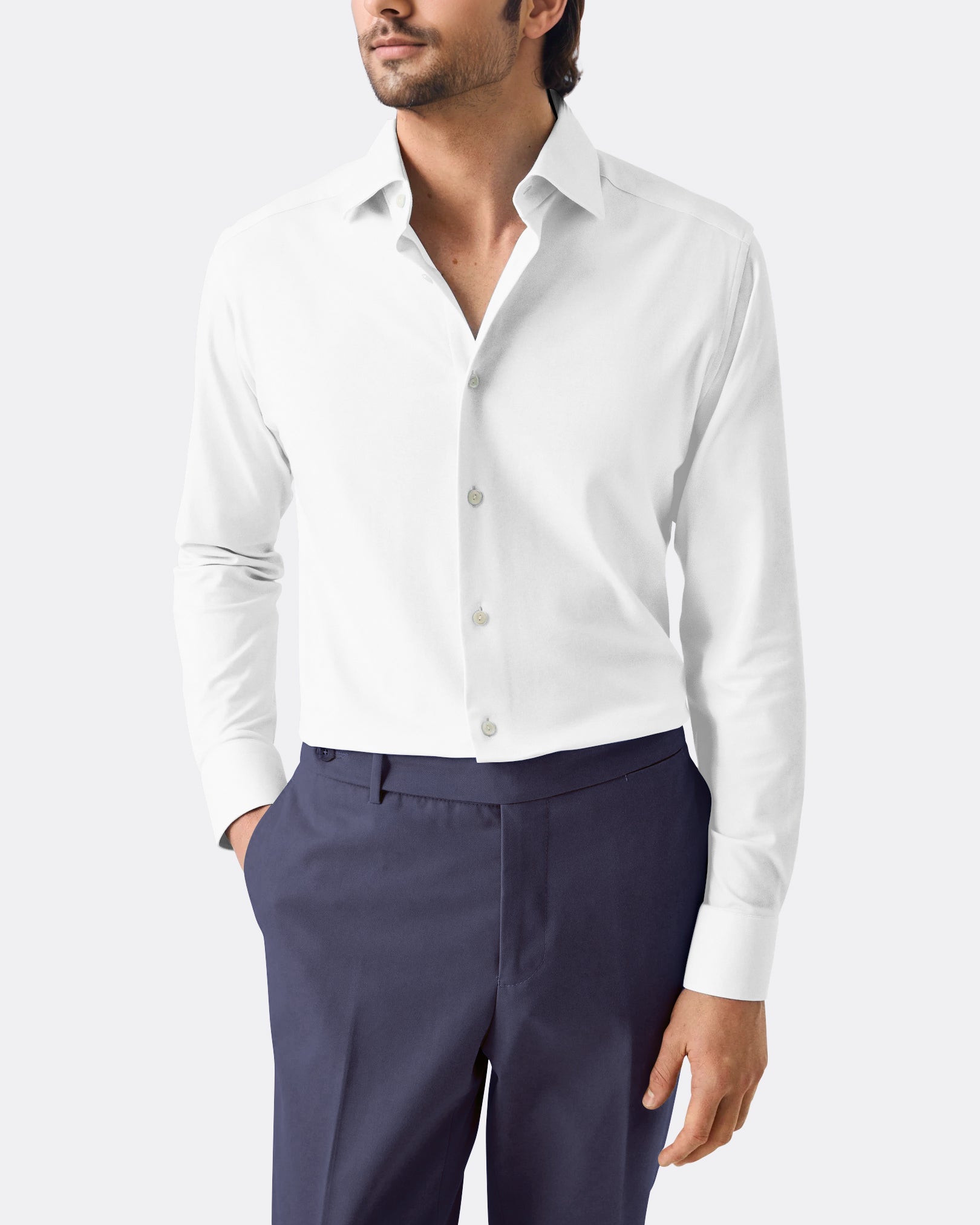 Add a pop of color to your formal wardrobe with the Bright Blue Poplin. Made from lightweight cotton poplin, it stays crisp and breathable all day. Perfect for wearing with a suit and tie or under a blazer for important meetings.